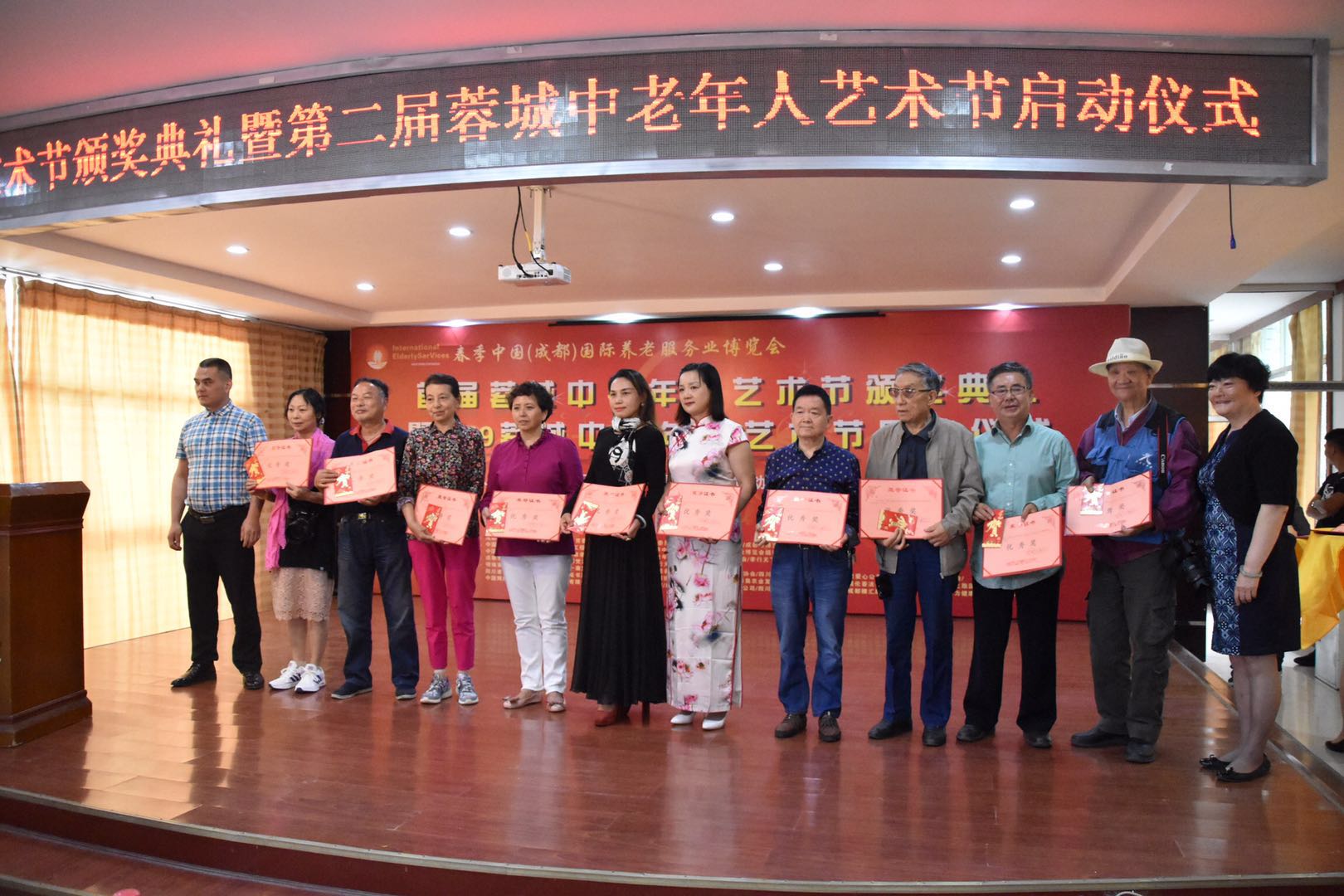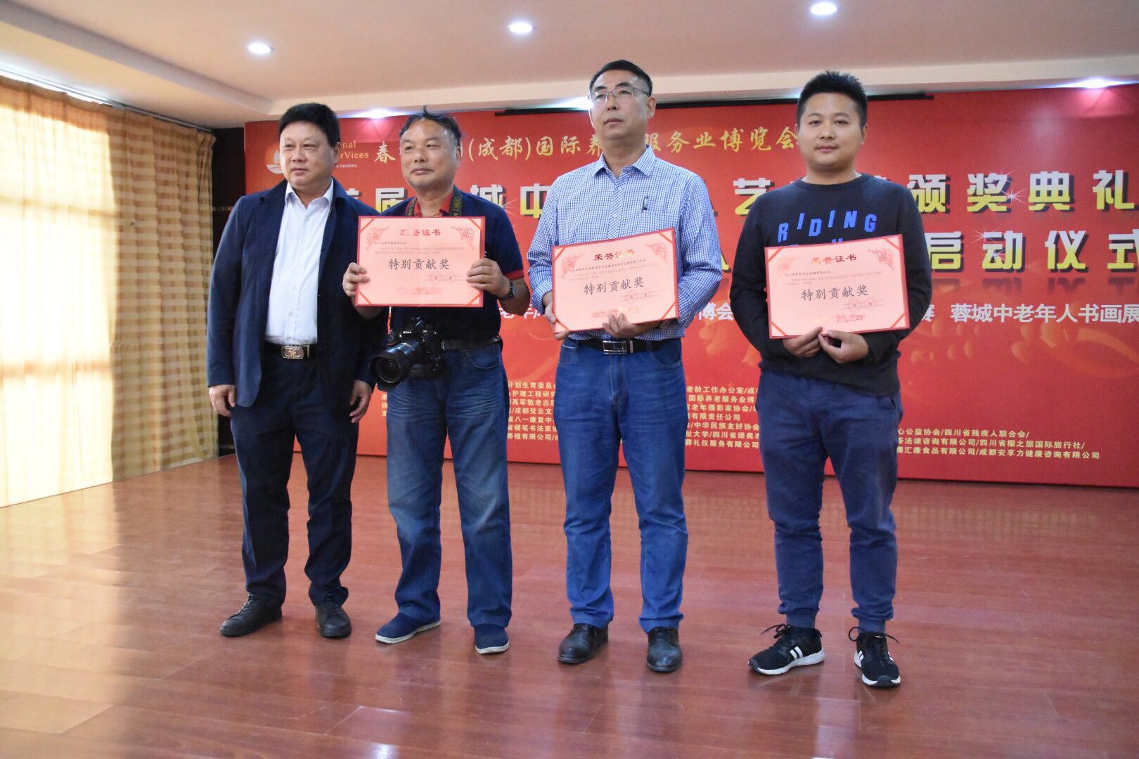 2018年5月6日,由中国(成都)国际养老服务业博览会主办,联合中国老龄事业发展基金会爱心护理工程研究发展中心、中国老龄事业发展基金会成都再军敬老志愿服务工作站、四川通惠老年大学、四川省老年摄影家协会、孝行天下摄影之家顺利举办了首届蓉城中老年人艺术节颁奖典礼。