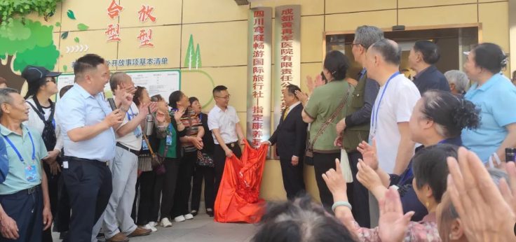 在全体嘉宾的见证下,双方董事长郑重签署战略合作协议。随着红绸帷幕缓缓揭开,“四川穹窿畅游国际旅行社—指定康养基地”的牌匾正式亮相,标志着这一跨界项目进入实质推进阶段。