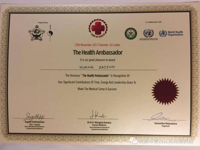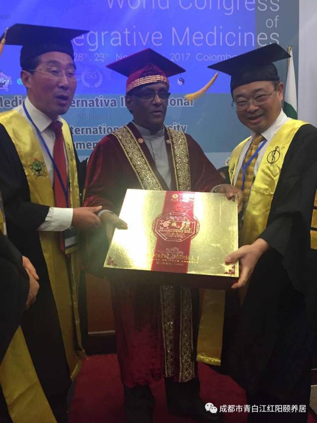 2017年11月25日至12月2日,主题为“传统医药,人类健康的选择”的第55届世界传统医学大会在斯里兰卡首都科伦坡隆重举行。中医作为东方传统医学的起源,大会组委会特别邀请中国传统医学专家赴会,中国老龄事业发展基金会爱心护理工程研究发展中心主任、成都黄再军医院有限责任公司董事长、著名疑难病专家黄再军受邀随中国代表团参加本次大会。基于在中医对风湿、类风湿、肌无力、肌萎缩等疑难杂症治疗方面的杰出贡献,黄再军董事长荣获“世界传统医学杰出名医奖”、“世界传统医学优秀成果奖”,被斯里兰卡医学大学授予博士称号。黄再军董事长载誉归来,12月13日在颐养居与爷爷奶奶以及职员工们分享第55届世界传统医学大会盛况。