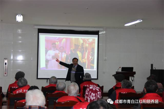 下午两点半,颐养居五楼多功能厅坐无虚席,爷爷奶奶们齐聚一堂,热情高涨,认真聆听黄再军董事长的精彩分享。
